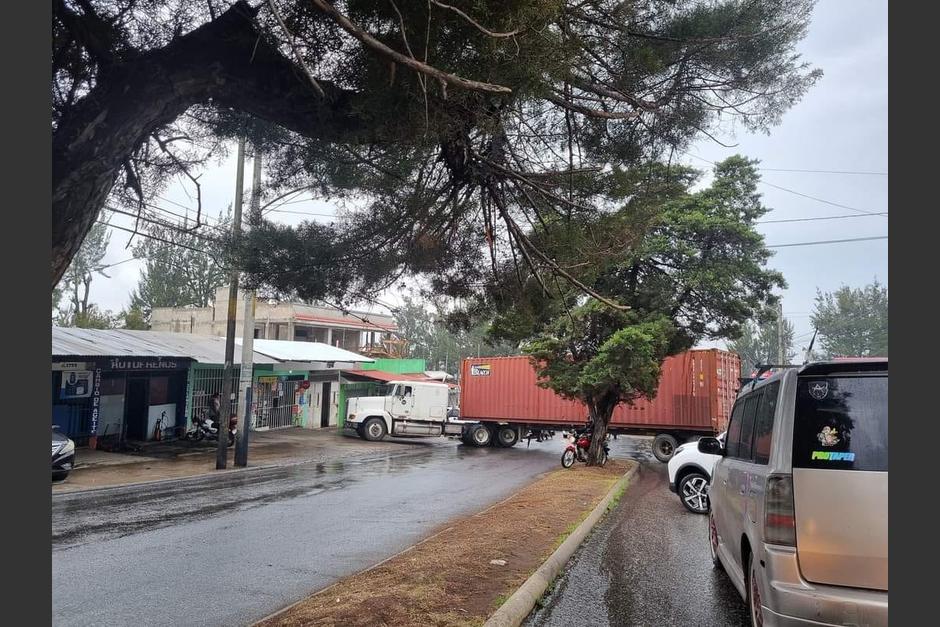 Al parecer, el vehículo de transporte pesado intentaba cruzar en U en una calle donde no tuvo suficiente espacio para hacerlo y provocó que el tránsito se detuviera.