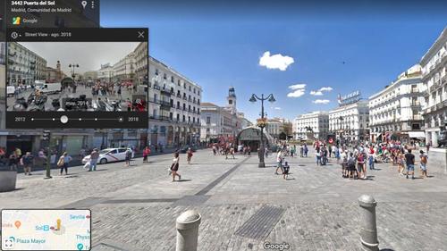 Para ello, únicamente debes entrar al modo de Street View en alguna localización importante y en la zona superior izquierda de la interfaz, verás una fecha junto a un reloj. Si pulsas sobre la misma podrás seleccionar esa misma localización en varias etapas del tiempo, incluso puedes viajar hasta más de 10 años atrás para ver cómo ha cambiado un lugar concreto.