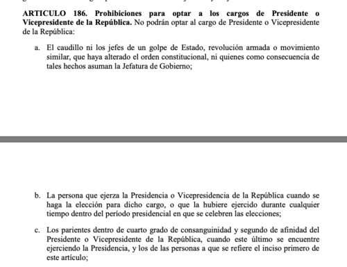 Zury Ríos intentó participar en elecciones anteriores; pero el TSE la rechazó por considerar que tiene prohibición constitucional por ser hija del expresidente de facto, Efraín Ríos Montt. La Constitución de la República, en su artículo 186, prohíbe optar a cargos de presidente o vicepresidente a hijos hasta el cuarto grado de consanguinidad de caudillos o jefes de golpes de Estado. Ríos Montt llegó al poder el 23 marzo de 1982.