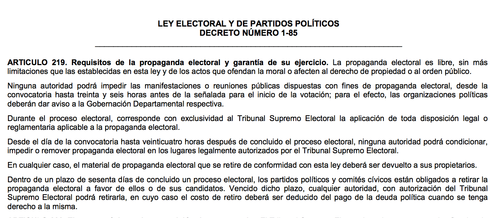 Según el vocero de la institución, Julio Ochoa, violaron el artículo 219 de la Ley Electoral y de Partidos Políticos. "Hasta el momento en el que el pleno del TSE no haga la convocatoria oficial a elecciones antes de eso mencionar precandidatos (que es figura no existe) es una por supuesto una vedada campaña anticipada y una clara violación al artículo 219 de la ley", dijo.