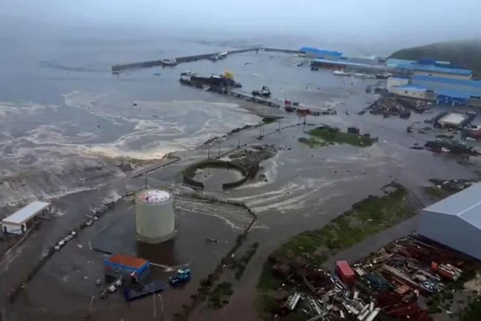 Uno de los sectores más afectados fue el puerto de la localidad, donde el agua arrasó con la infraestructura de la fábrica de procesamiento de mariscos Alaid. En imágenes difundidas por el canal de televisión Zvezda, se observa el edificio parcialmente sumergido y contenedores flotando en el mar.