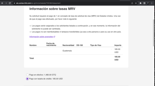 Hasta diciembre de 2025, el costo de la solicitud de visa es de $185, equivalente a Q1,480.