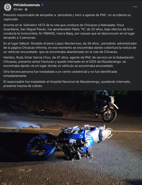 EN CONTEXTO: Capturan a responsable de atropellar a periodista en Suchitepéquez