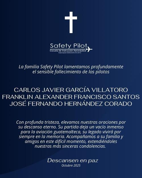 La tercera víctima fue identificada como José Fernando Hernández Corado, también piloto aviador, según la Escuela de Aviación Safety Pilot, quien lamentó el hecho por medio de sus redes sociales.