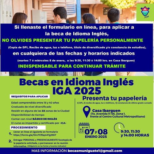 MuniGuate en alianza con el Instituto Guatemalteco Americano (IGA) abren convocatoria para que estudies inglés por medio de sus becas, debes de cumplir los requisitos y el procedimiento adecuado para que seas partícipe de los cursos.