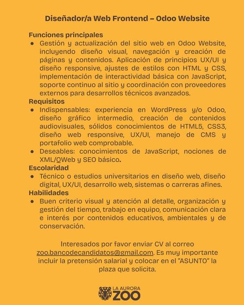Si estás interesado envía tu CV al correo zoo.bancodecandidatos@gmail.com.