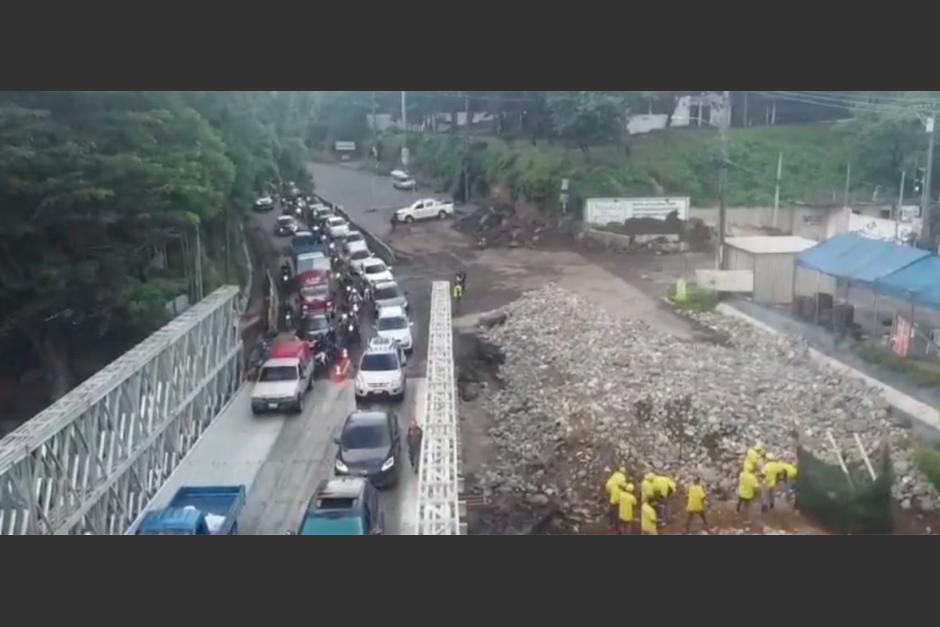Después del colapso de una porción de la carretera en el kilómetro 17.5 de la ruta al Pacífico, el Gobierno coordinó la instalación de un puente modular, el cual ha solucionado en parte los problemas de movilidad en ese sitio.