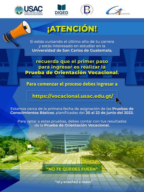 La Universidad de San Carlos de Guatemala lanzó su convocatoria para la realización del examen de Orientación Vocacional como requisito indispensable para las inscripciones de primer ingreso.