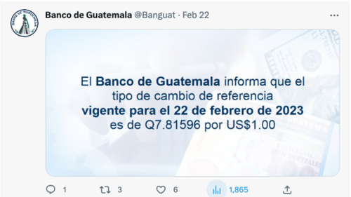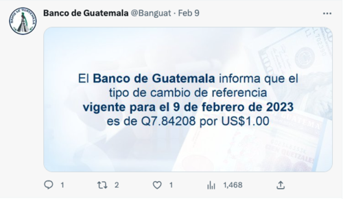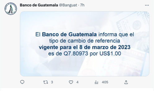 En octubre de 2022 se comenzó a ver un incremento gradual en el valor del dólar frente al quetzal, estabilizándose en los últimos meses y desde la última semana de febrero la tendencia es un decrecimiento gradual.
