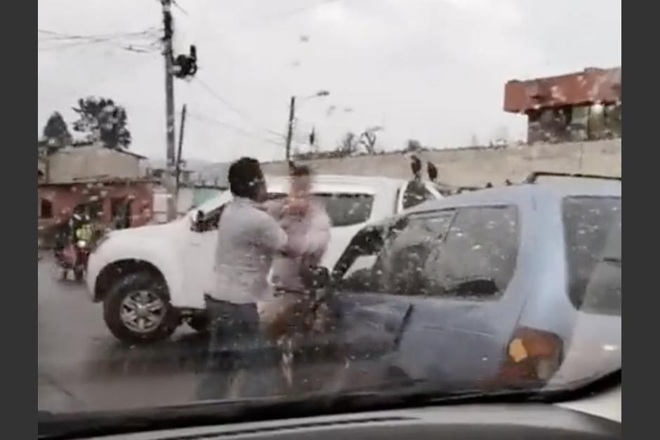 Captan un enfrentamiento a golpes, entre dos conductores en medio del tránsito en Quetzaltenango.