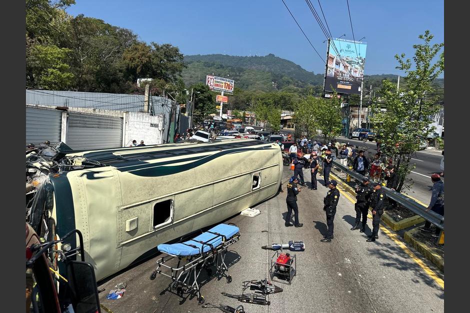 Un autobús se accidentó y terminó volcado en la Interamericana, en jurisdicción de Mixco.