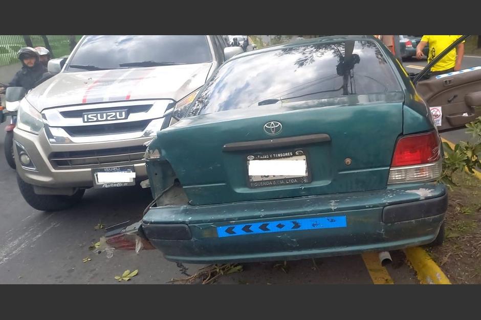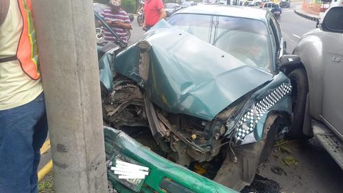Taxi pasa colisionando varios vehículos y finalmente es detenido al colisionar contra poste en bulevar Lourdes zona 5