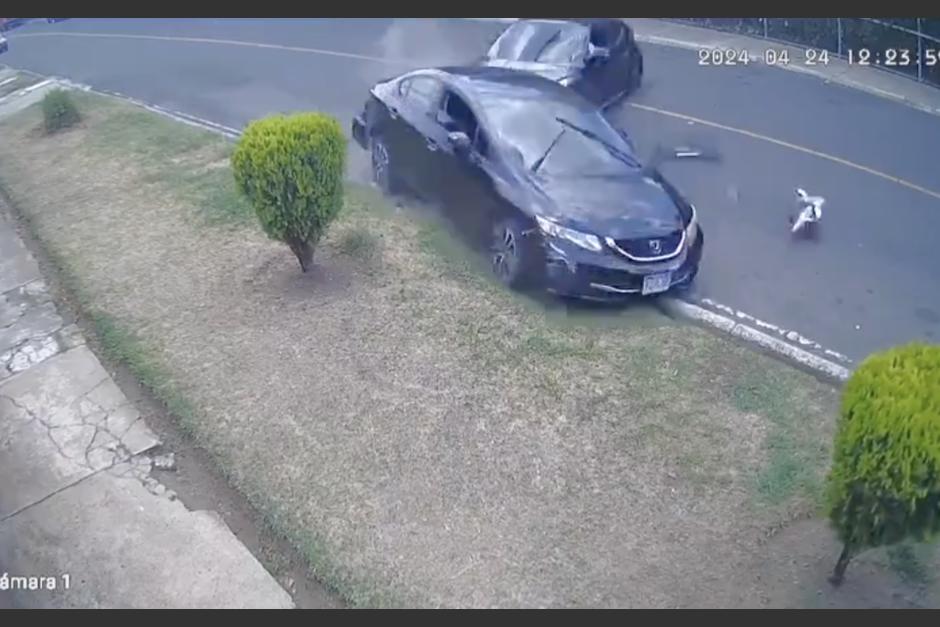 Una cámara de seguridad captó el momento en que se produjo un accidente de tránsito entre dos vehículos, en Kaminal Juyú, en la zona 7 de la ciudad de Guatemala.