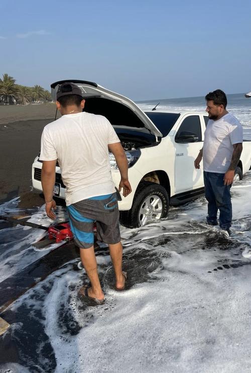 Un vehículo quedó atrapado en la arena, y la manera en que trataron de sacarlo dio de qué hablar en redes sociales.