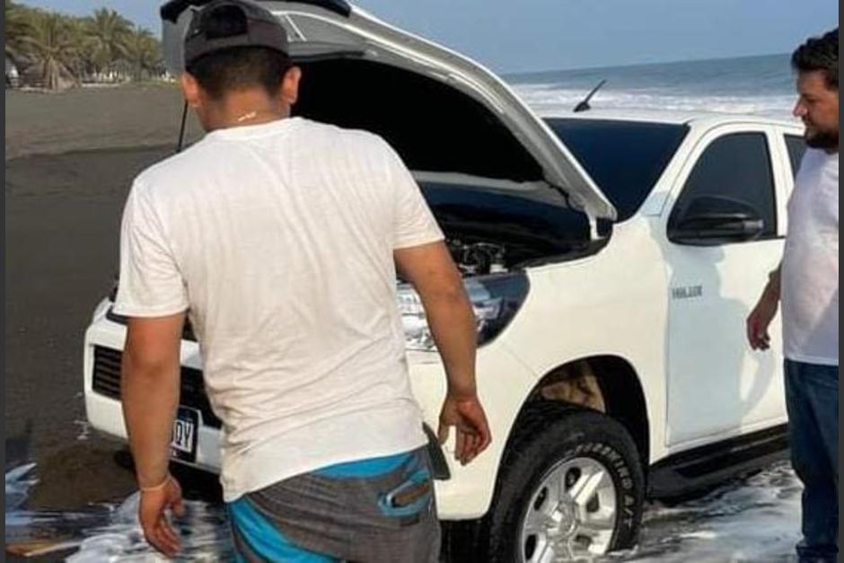 En redes sociales se hizo viral una fotografía que muestra cómo un vehículo tipo pick up quedó atorado en la arena, a la orilla del mar.