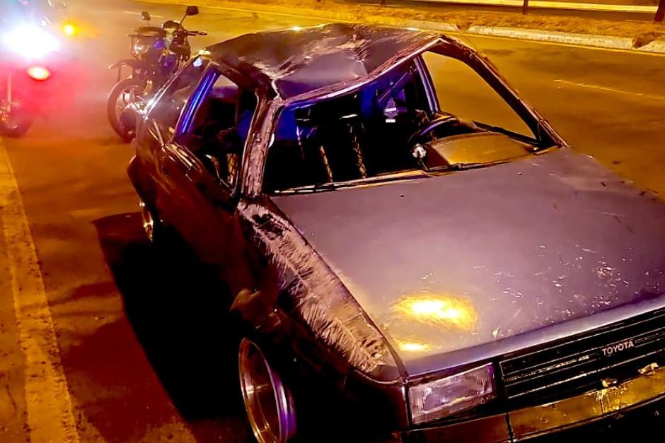 Por causas que se desconocen, un vehículo se accidentó y terminó volcado en la salida del viaducto Novicentro, en el Anillo Periférico y 27 calle de la zona 11 de la ciudad de Guatemala.