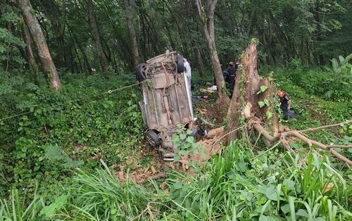 Bomberos Municipales Departamentales acudieron a la escena, donde encontraron un vehículo volcado y a los tres tripulantes fallecidos.