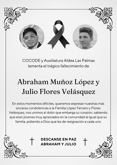 "Aldea Las Palmas, Coatepeque, está de luto por el trágico deceso de tres jóvenes (...). Nos unimos al dolor que en estos momentos embarga a estas tres familias muy queridas en nuestra comunidad", indica un texto en redes.
