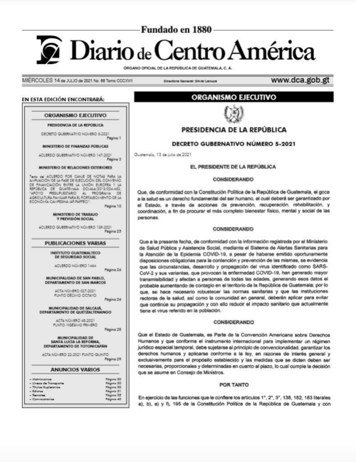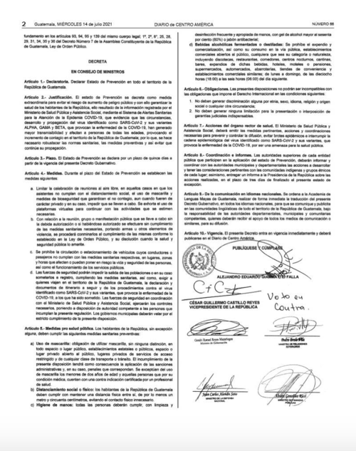En dicho documento, se lee que el vicepresidente de la República, Guillermo Castillo votó en contra, debido a que este considera que lo Guatemala necesita es un "Estado de vacunación" y no de Prevención.