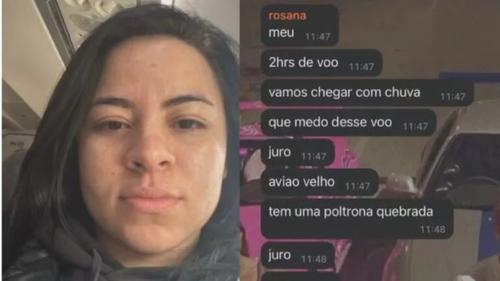 Rosana Santos Xavier abordó por motivos de trabajo; faltaban dos horas para llegar al destino. Les contó su preocupación a sus familiares y escribió: "Dos horas de vuelo, vamos a llegar lloviendo. Qué miedo da este vuelo". Incluso dejó evidenciado el mal estado de las sillas: "Es un avión viejo, tiene el asiento roto".