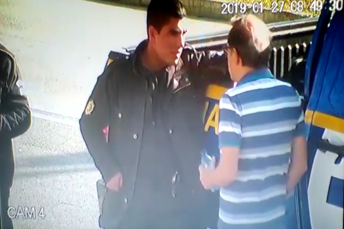 La grabación, según registro de la cámara, se realizó el pasado 27 de enero a las 8:49 de la mañana. En las imágenes se observa a un hombre de particular que sostiene una botella de agua pura y conversa con un policía.