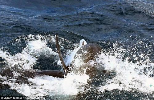 Un hecho realmente sorprendente quedó al descubierto cuando un gran tiburón blanco no dudó en atacar a otro y todo fue captado por la cámara del buzo Adam Malski, quien navegaba frente a las islas de Neptuno en el sur de Australia.