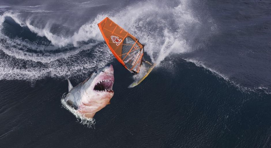 El competidor de kitesurf protagonizó el susto de su vida al toparse con un tiburón y golpearlo de lleno. El atleta no pudo mantener el equilibrio y cayó de su tabla.