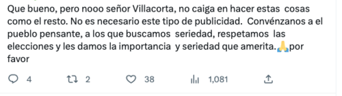 "La confianza con la ciudadanía se construye desde la transparencia. Quiero compartir lo que soy, las redes sociales son el canal que tengo con la ciudadanía. Quiero que conozcan que con Manuel Villacorta, tendremos un gobierno con lealtad, disciplina, coraje y entrega por una Guatemala justa y próspera para todas y todos", agrego el candidato presidencial.
