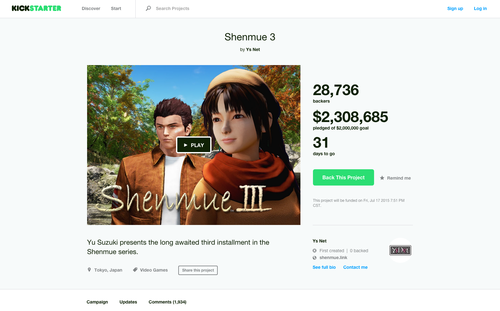 "Hace tres años descubrí Kickstarter y, tras analizarlo, decidí hacer "Shenmue 3" a través de la página", añade.