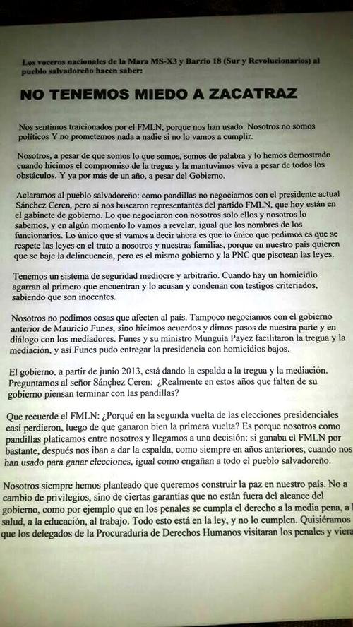 13 y 18 en El Salvador afirmaron en un comunicado que el