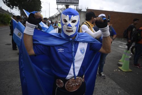 Al Aeropuerto Internacional La Aurora acudieron decenas de personas que esperaban poder saludar a los atletas que recién llegaron a Guatemala. Entre ellos, un guatemalteco disfrazado del luchador Rayo Chapín.