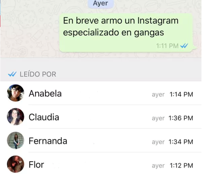 Luego se desplegará el nombre de nuestros contactos que han leído el mismo.