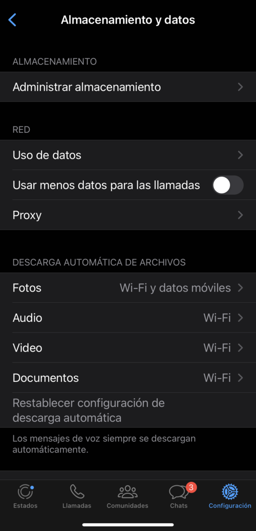 Ajustes > Almacenamiento de Datos > Uso de Datos
