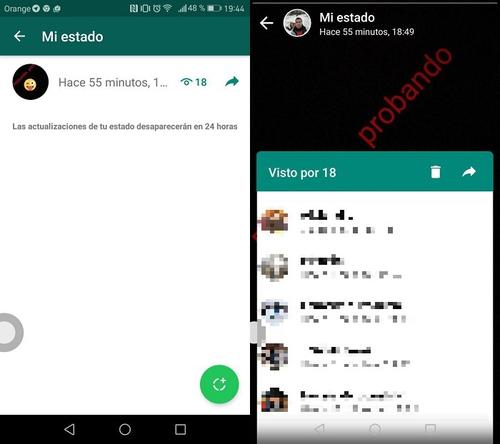 Si ya hemos subido algun Estado, este aparecerá hasta arriba y debajo de él, estarán los de nuestros contactos que una vez sean vistos, pasarán a la categoría "Vistos" para que tengamos limpio el espacio de los pendientes de visualizar.