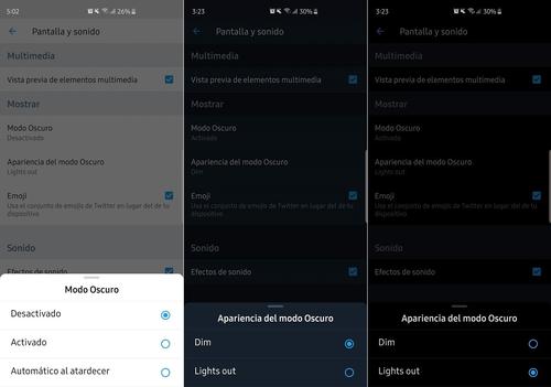 Una vez que ya ha sido descargada la app en Play Store, en el apartado Configuración y Privacidad aparecerá la opción de elegir entre Dim, con un tono azulado, y Lights Out.