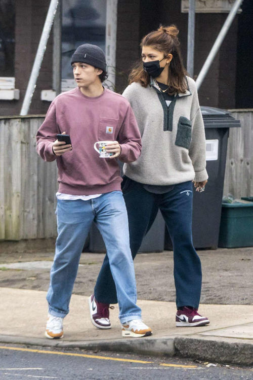 Tom llevaba una taza en su mano mientras que Zendaya rodeaba su cintura.