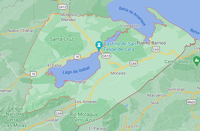 Está situado en la región nor-oriente de Guatemala y se encuentra rodeado del majestuoso Lago de Izabal.
