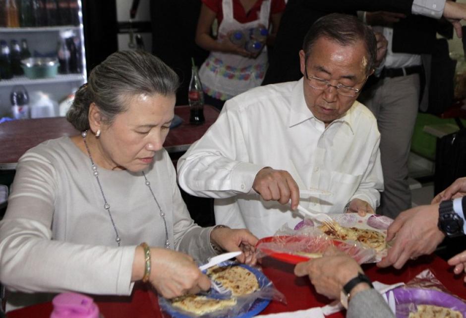 Ban Ki-moon visita pupusería en El Salvador