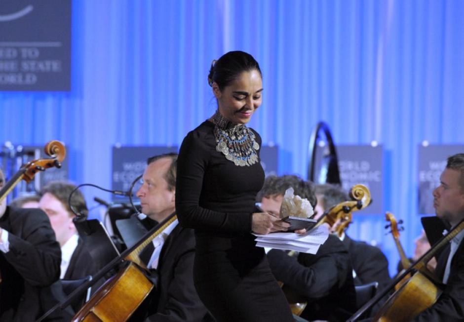 Shirin Neshat, una artista plástica iraní también fue premiada con el premio "Cristal". Al momento de recibir el galardón dijo que debía disculparse por no saber hablar en público. Dijo que los artistas no están acostumbrados a hacerlo en su país. Foto AFP