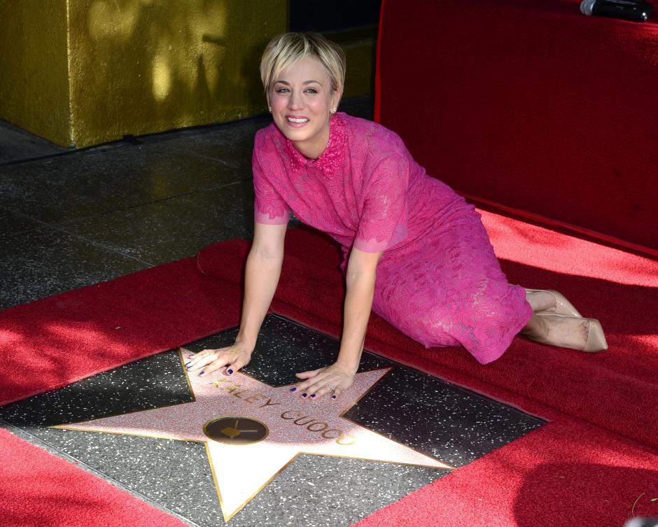 La actriz estadounidense Kaley Cuoco posa durante la ceremonia donde recibió una estrella en el Paseo de la Fama de Hollywood en Los Ángeles (EE.UU.). Cuoco, quien protagoniza la serie de televisión ganadora de Emmy 'Big Bang Theory', recibió la estrella 2,532 en la categoría televisión. EFE/MICHAEL NELSON