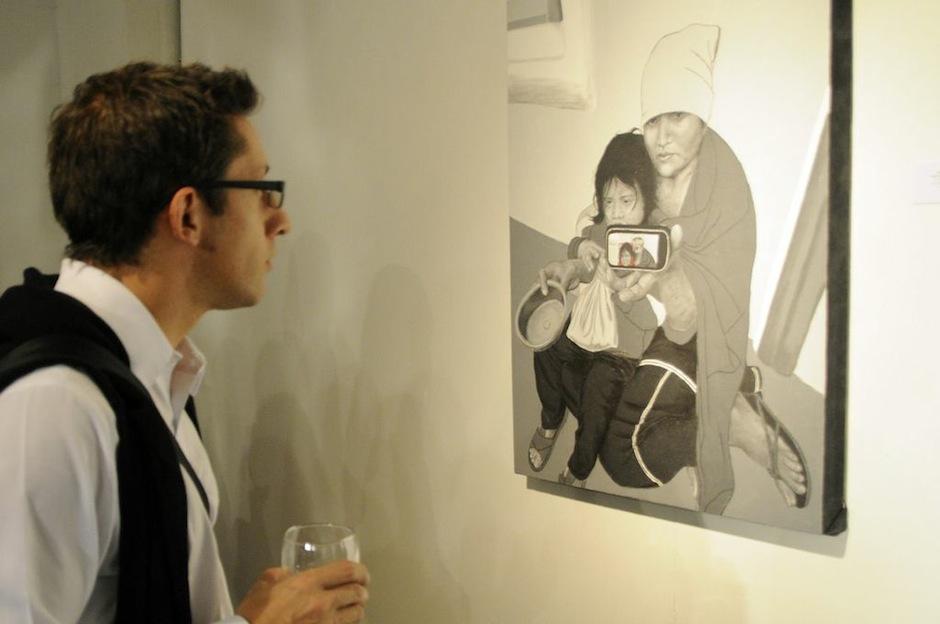 Con "Selfie" Mario Profundo muestra una escena que presenció en la calle, cuando una señora que pedía limosna tomó su celular y se hizo una fotografía con su hijo. "Fue un momento bizarro y en mi pieza trato de retratar el contraste entre la accesibilidad a la tecnología y la pobreza extrema".