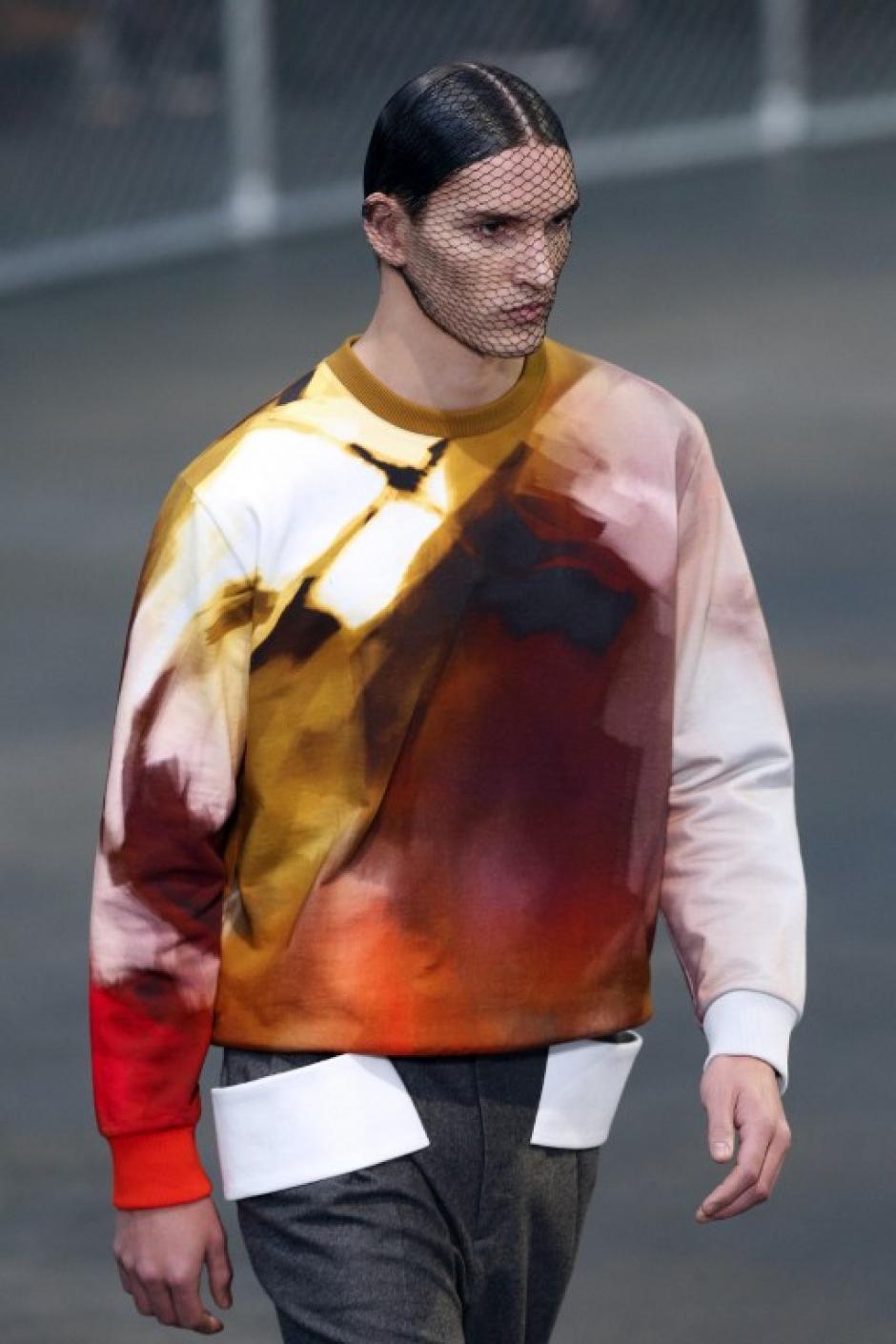 Los modelos de Givenchy lucieron redes en la cara durante la pasarela.