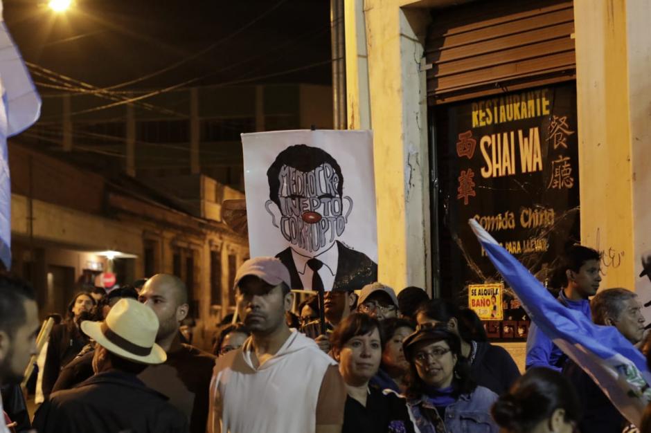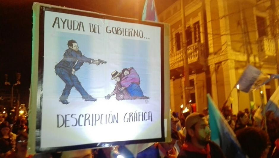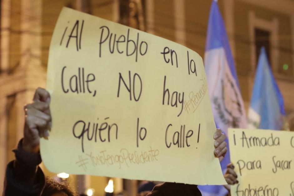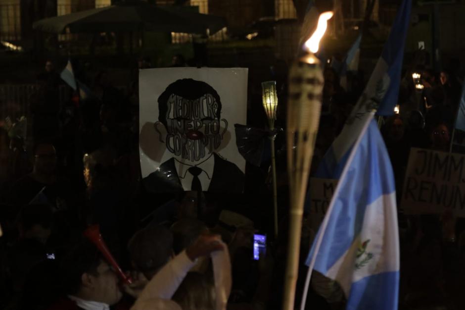 Las mantas de los manifestantes mostraban su descontento ante las decisiones de Jimmy Morales. (Foto: Gustavo Méndez/ Soy502)